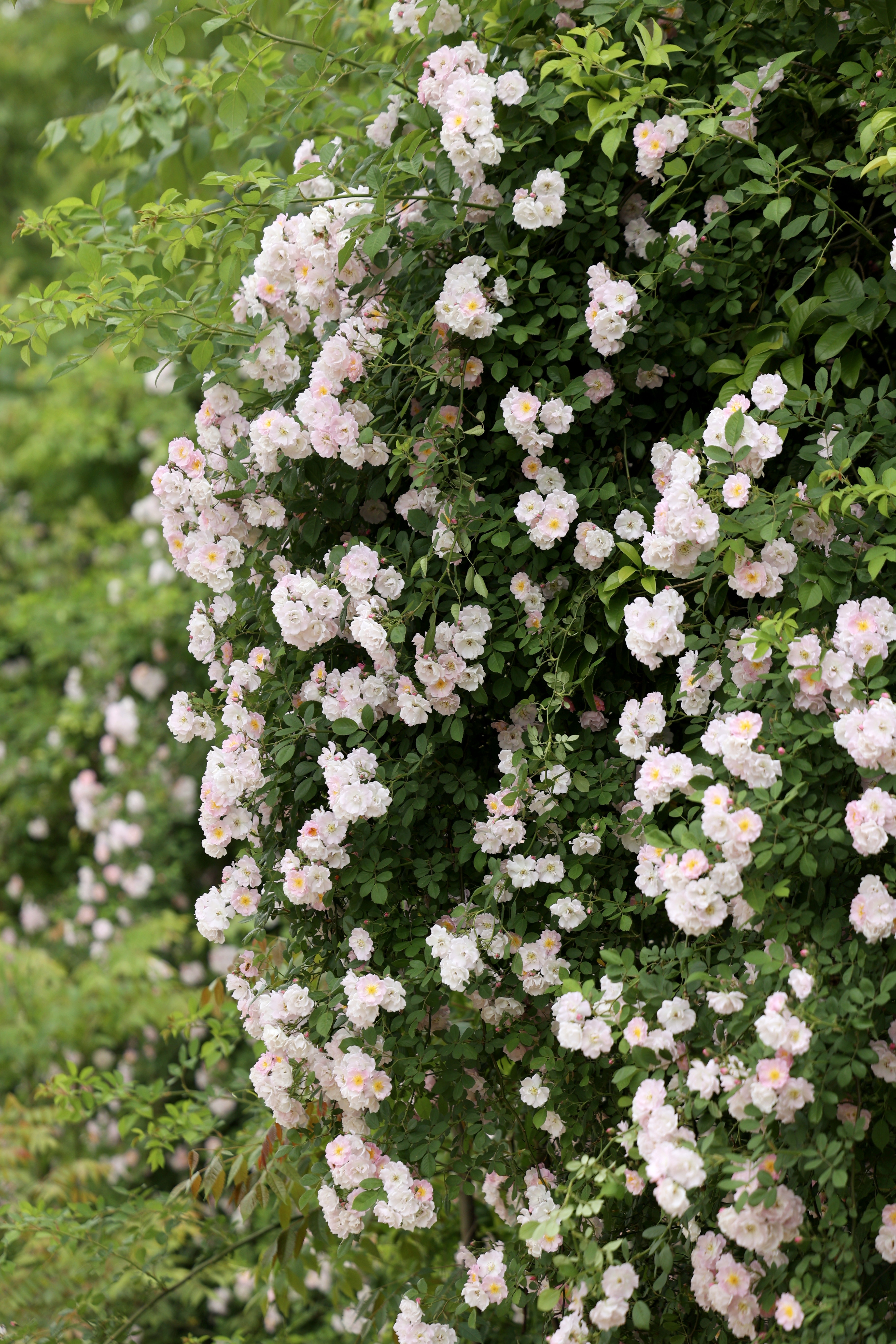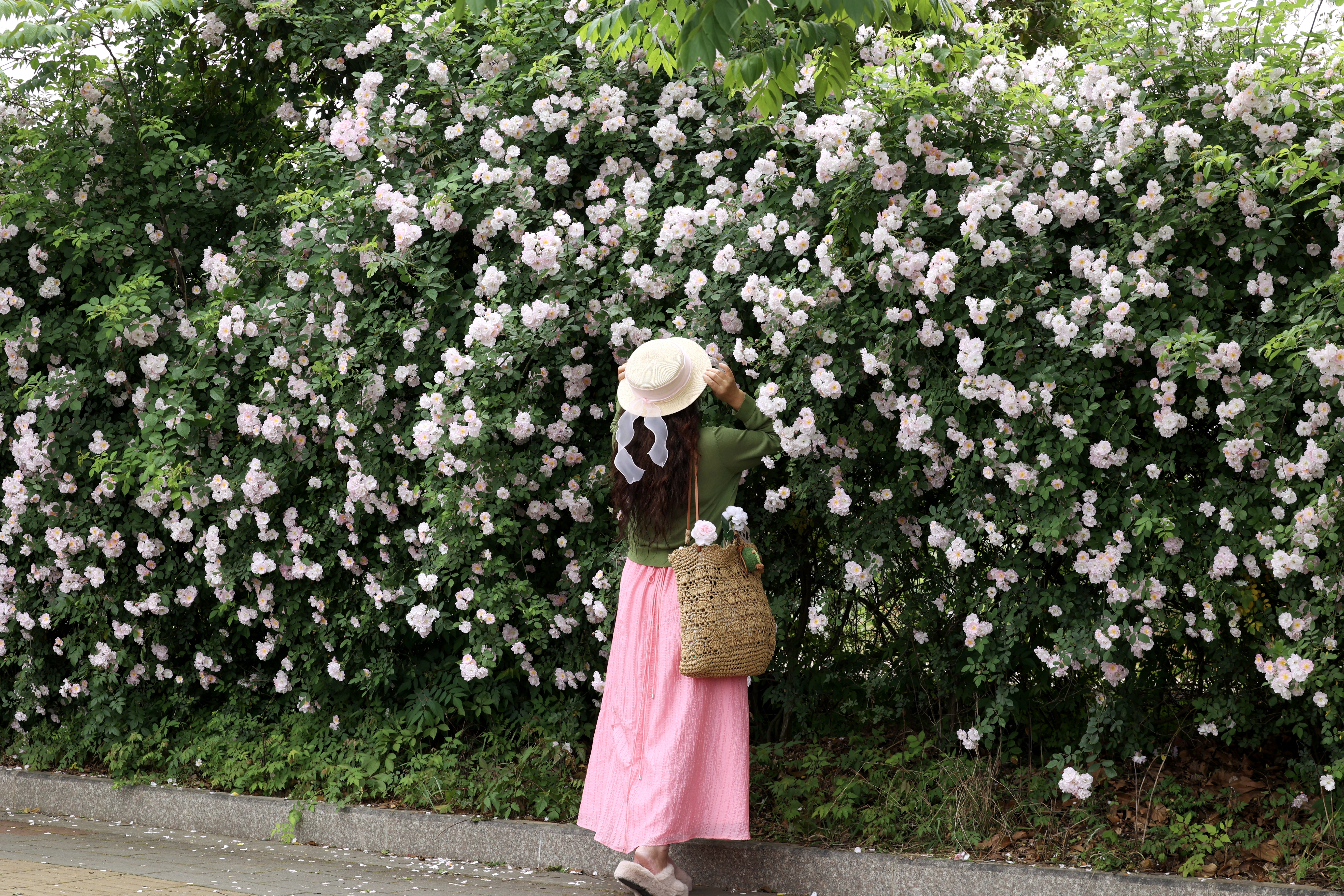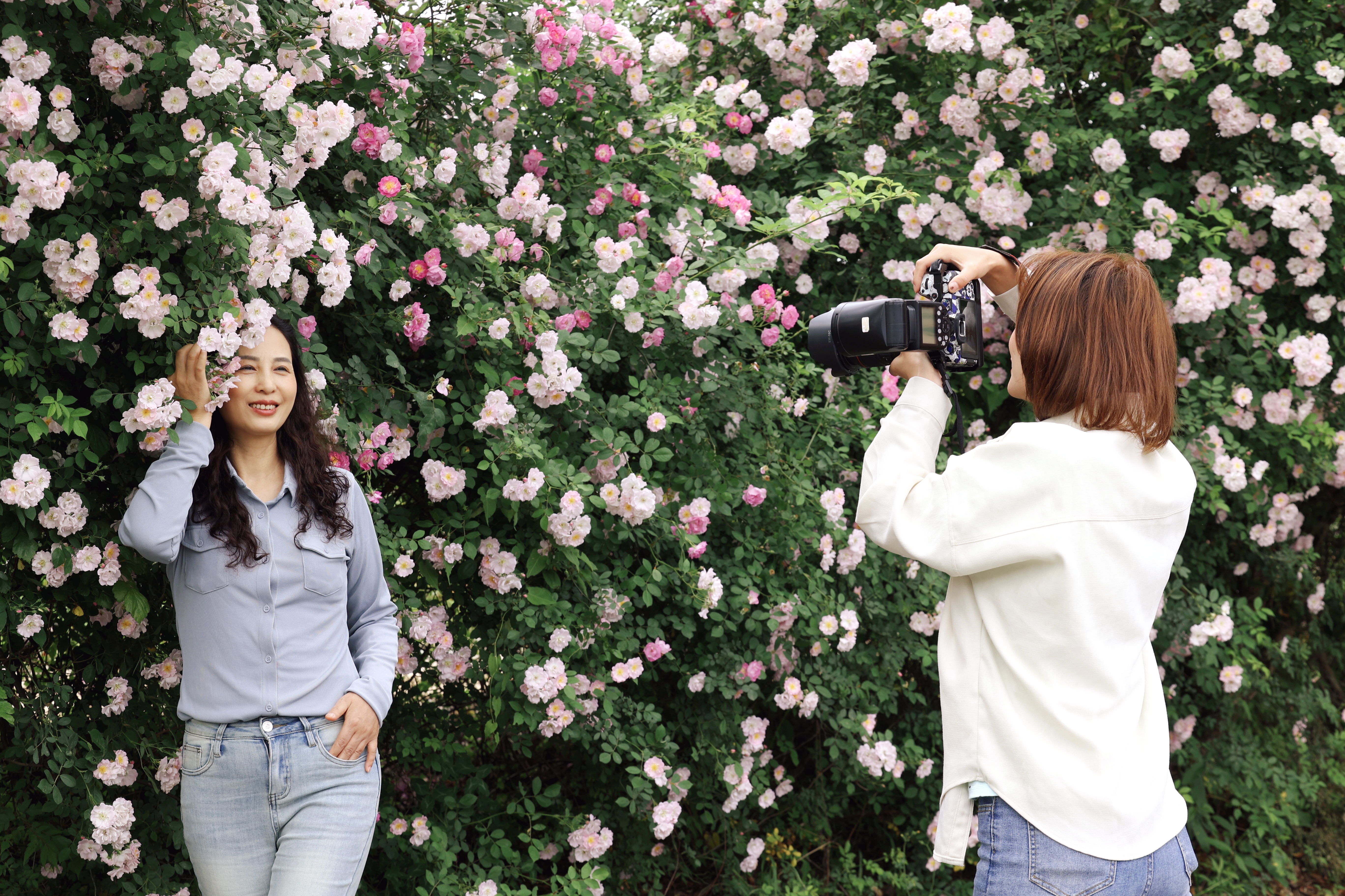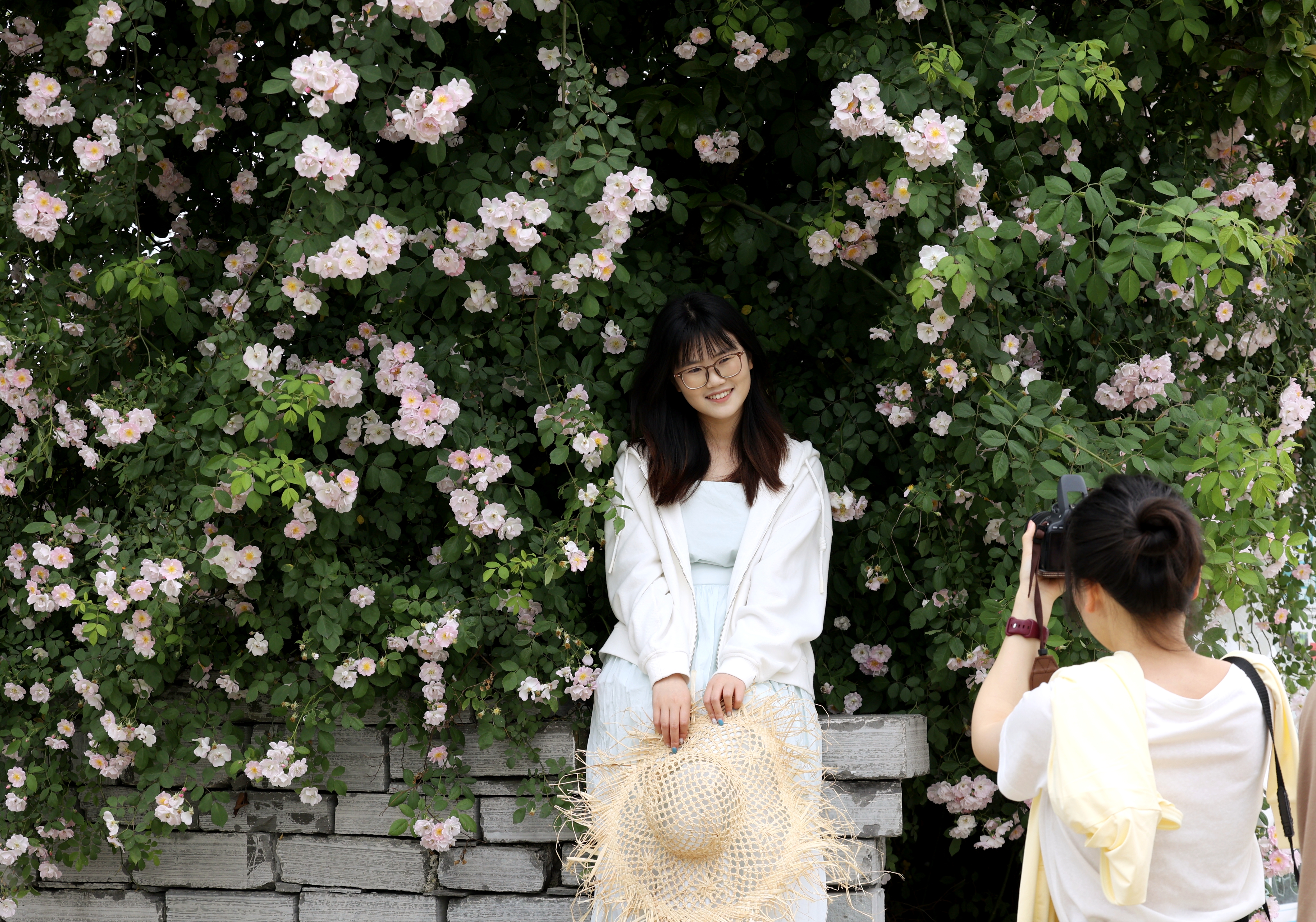 4月16日,位于贵安新区磊庄互通的夜郎金果猕猴桃生态果园,墙内外约1公里长的蔷薇花墙进入盛花期,粉白花朵沿围墙绵延绽放,形成浪漫“花瀑”,吸引不少市民游客前来打卡拍照。